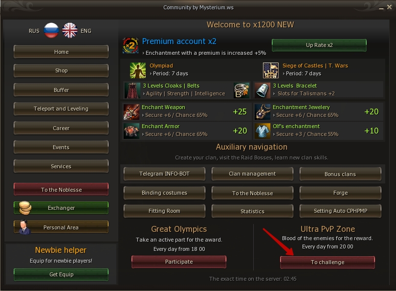 Mysterium is not just another PvP server LA2 HF; it's a project crafted with passion and love for the game. With us, you'll feel every minute spent in the game, every PvP battle, and every victorious moment.