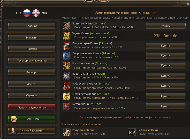 Увага! При першому вступі в клан персонаж отримує ПРЕМІУМ АКАУНТ!